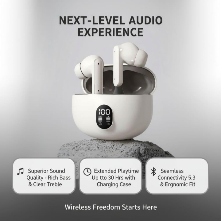 DIGITAL DISPLAY: Features an LED battery indicator case showing precise power levels for both earbuds and charging case
